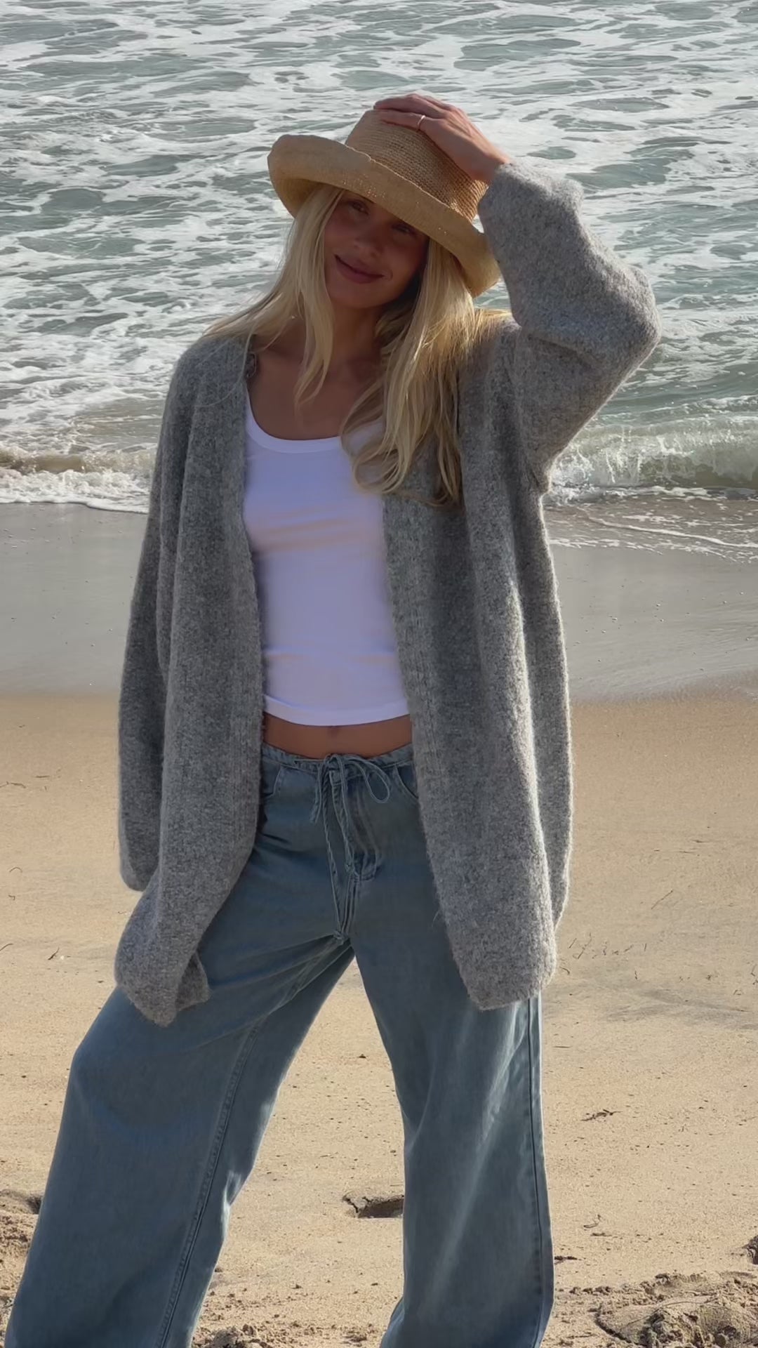 This ultra slouchy, open, oversized knit cardi is the perfect throw on-and-go essential for an easy, effortless look.