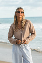 Free Falling Scoop Button Cardigan