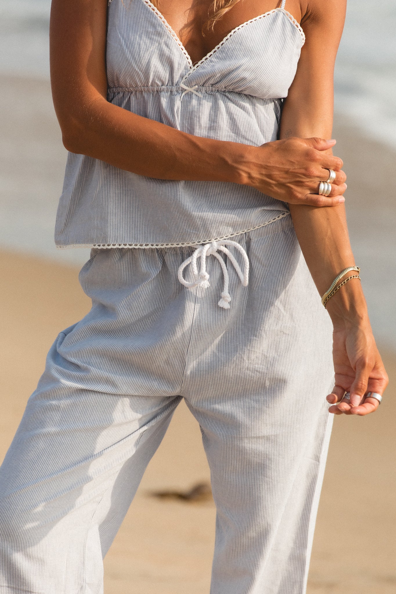 Just as cute as it is convertible, this set features a babydoll fit tank top and coordinating wide-leg pants for the perfect done-in-one look or style separately for a more put-together outfit.