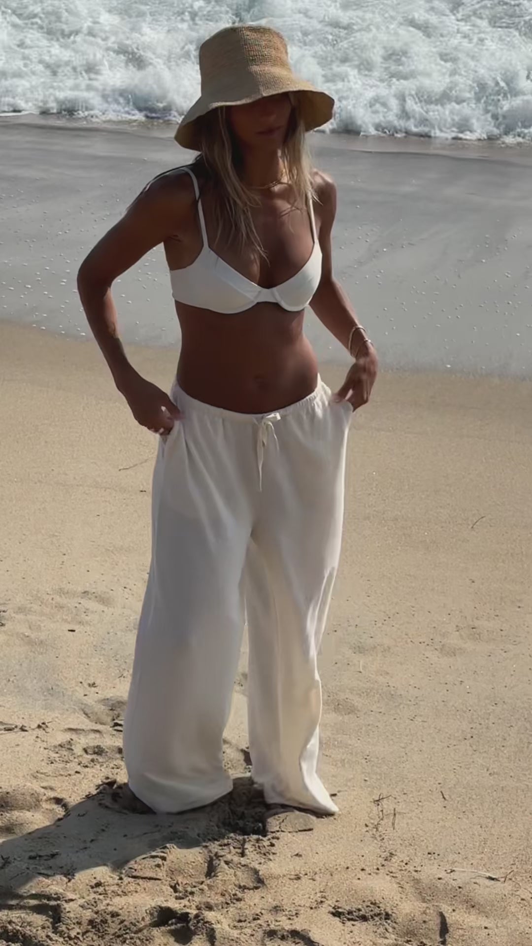 These pants feature a classic wide-leg, functional drawstring, pull-on silhouette crafted from our new signature buttery-soft fabric blend. Complete with pockets! Perfect for lounging at home or stepping out for any casual summer moment.