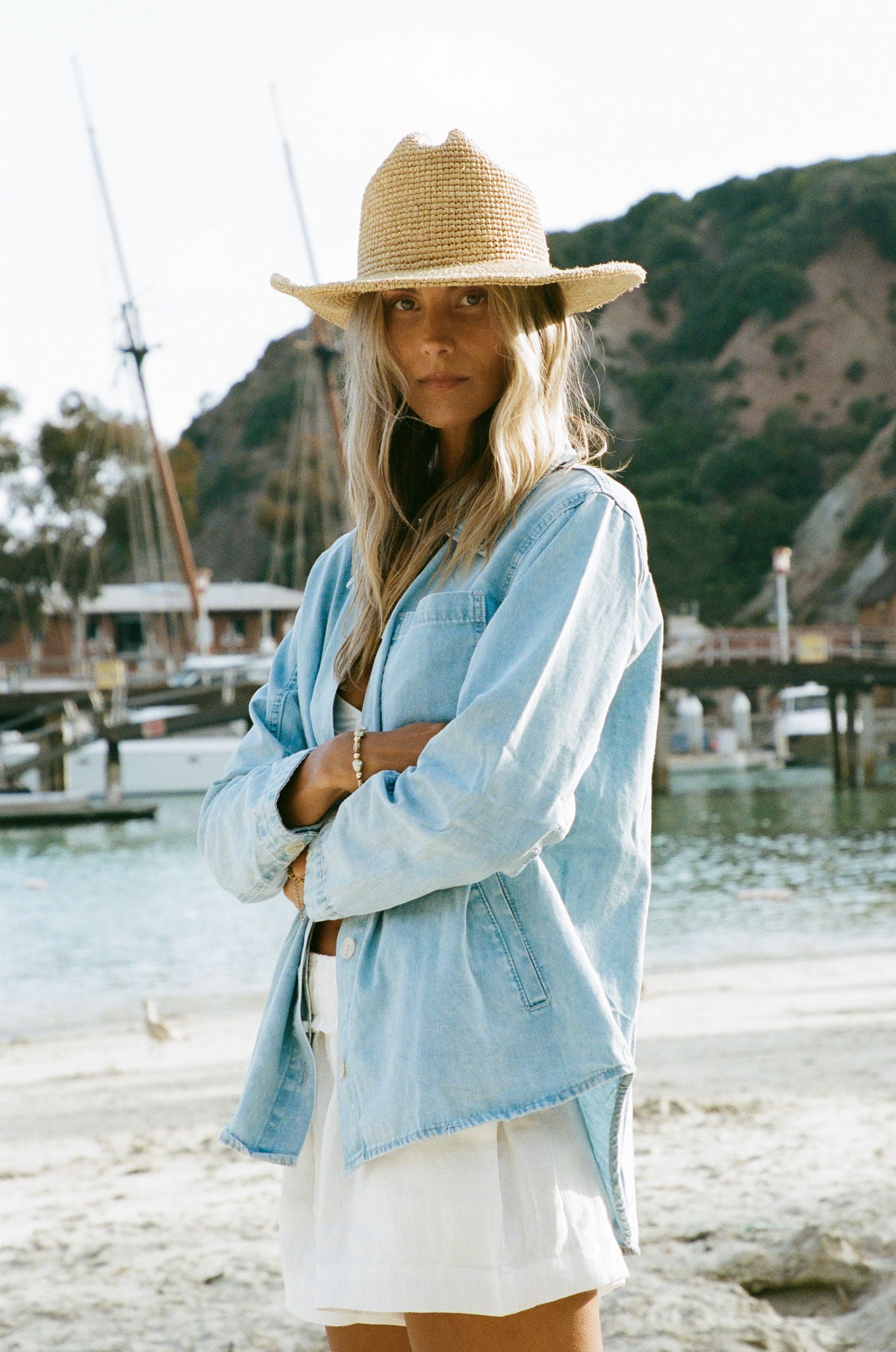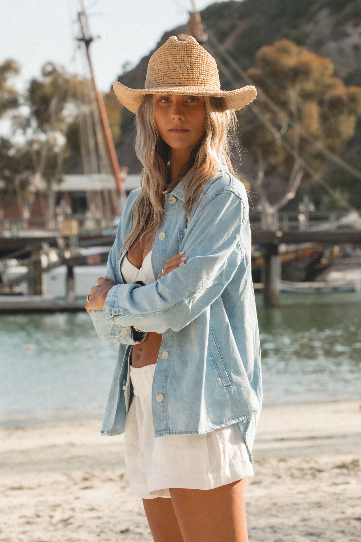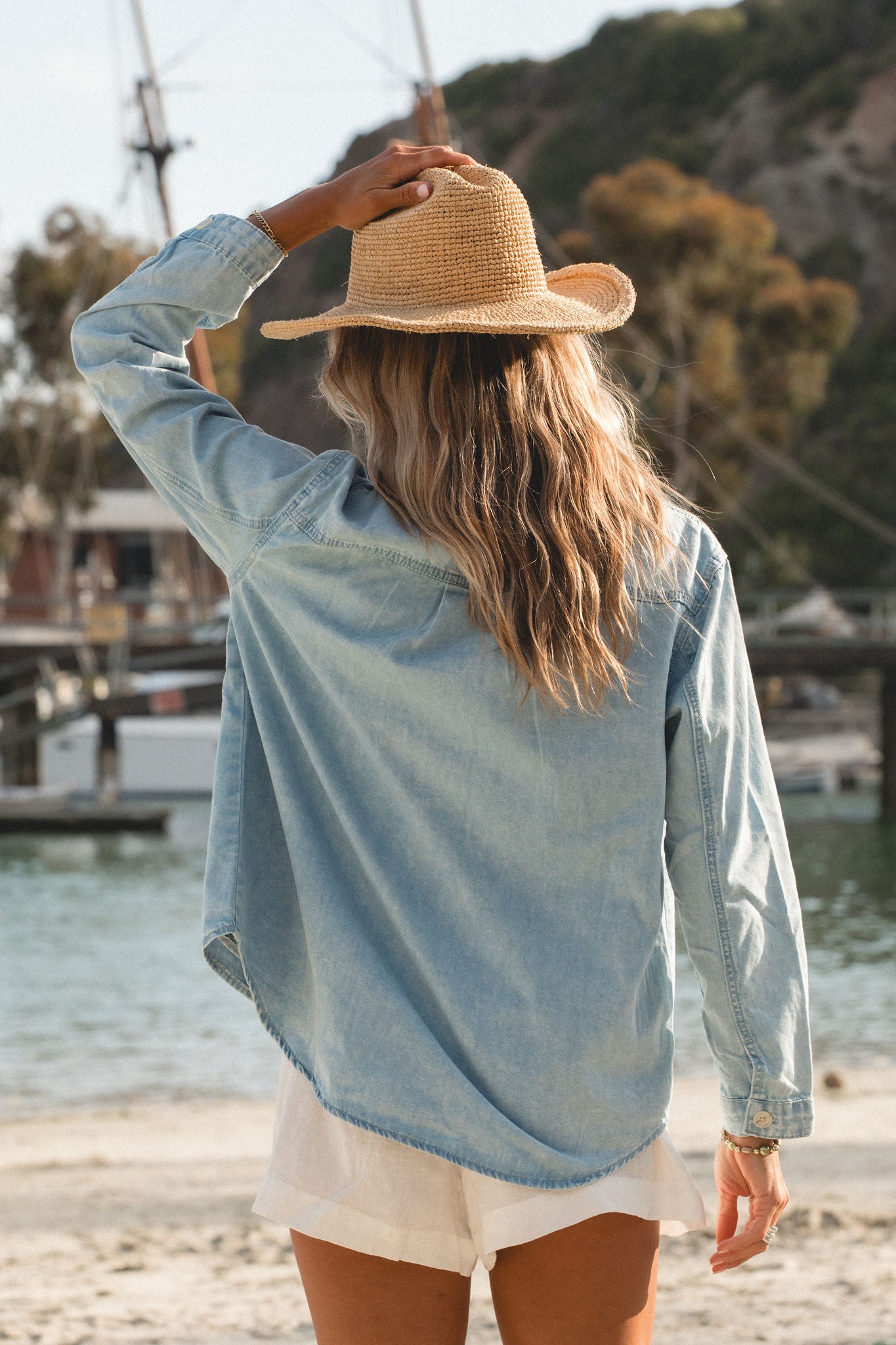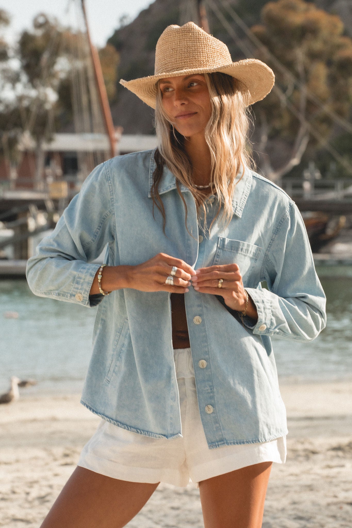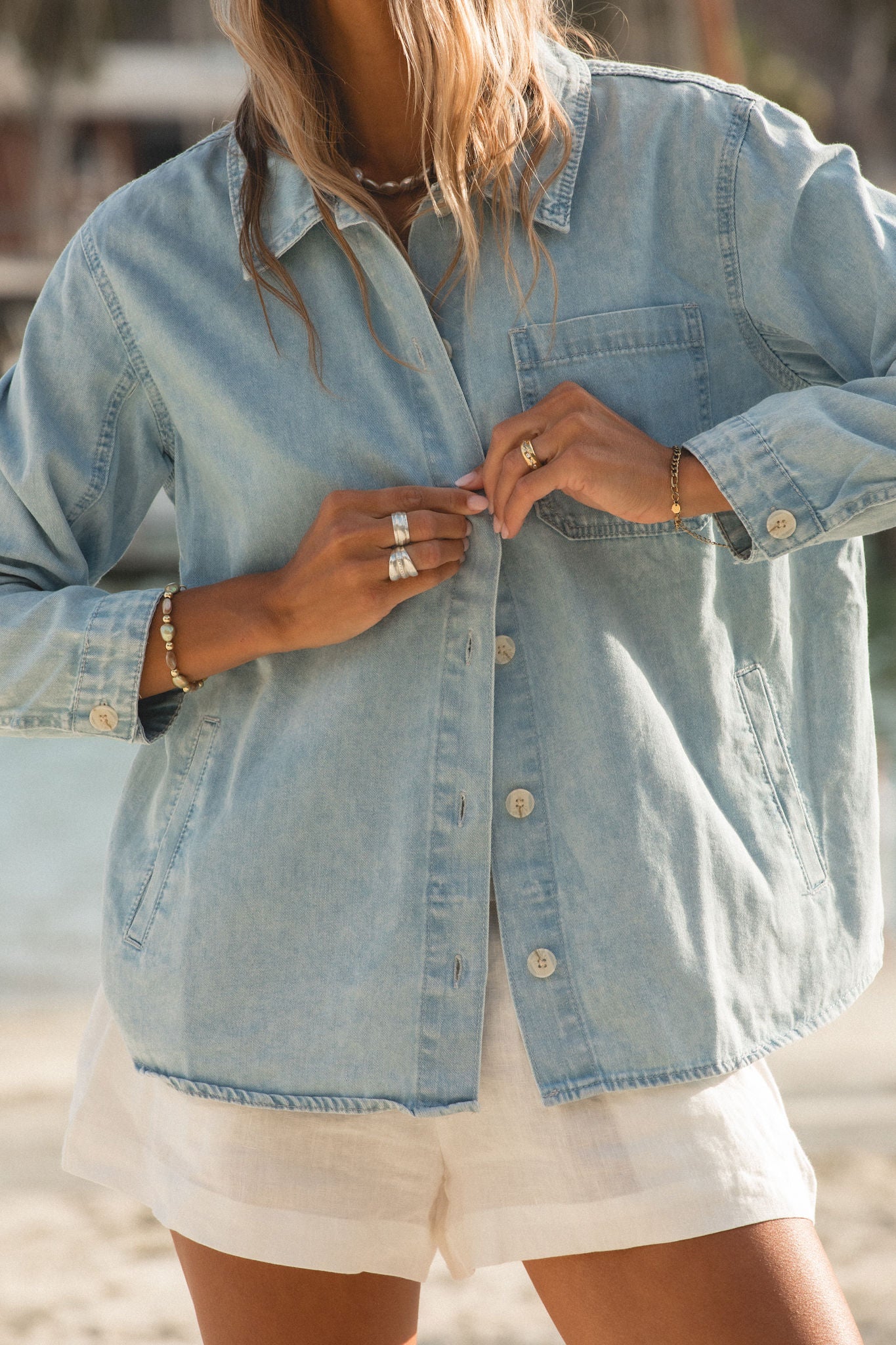 This classic denim shirt is crafted from cool cotton and features a slightly oversized fit, complete with button details and front pockets.