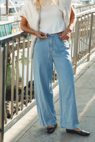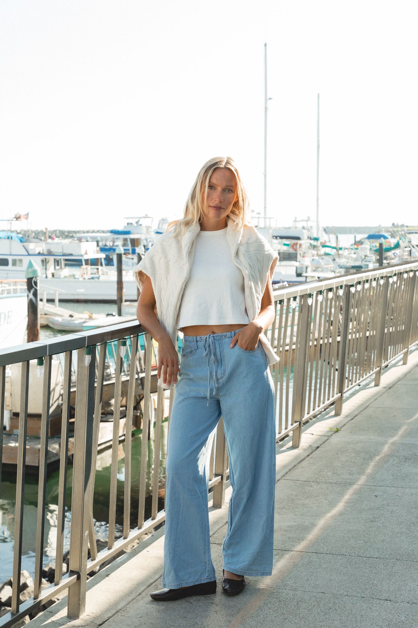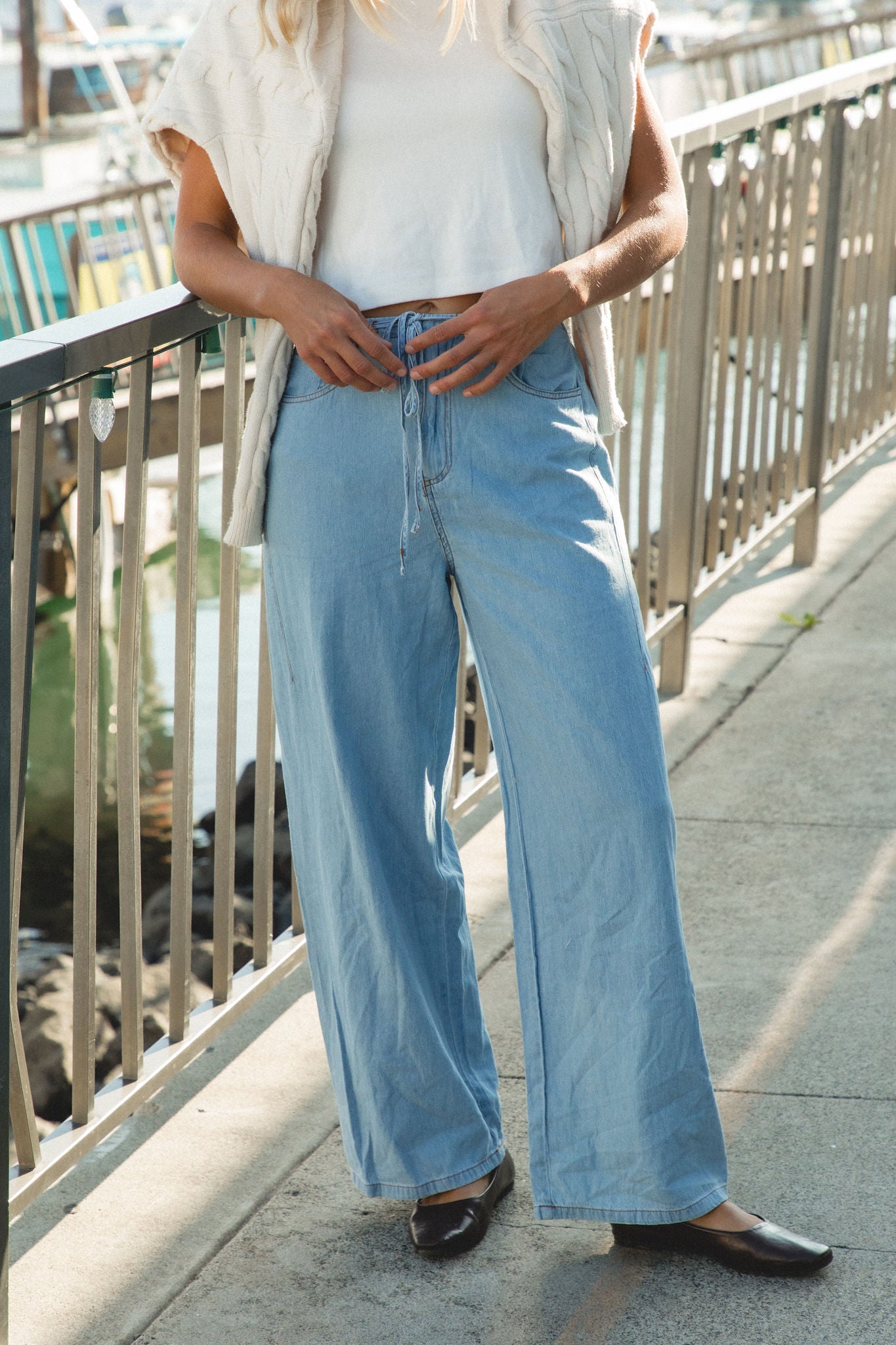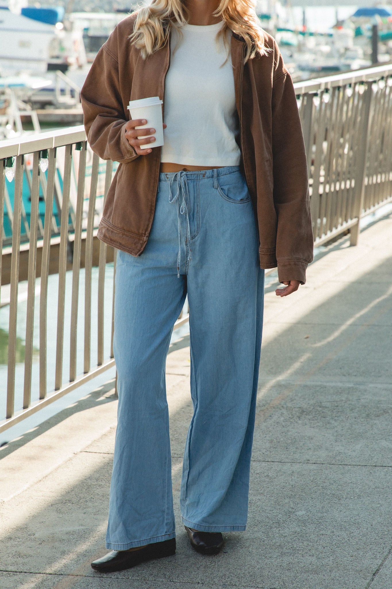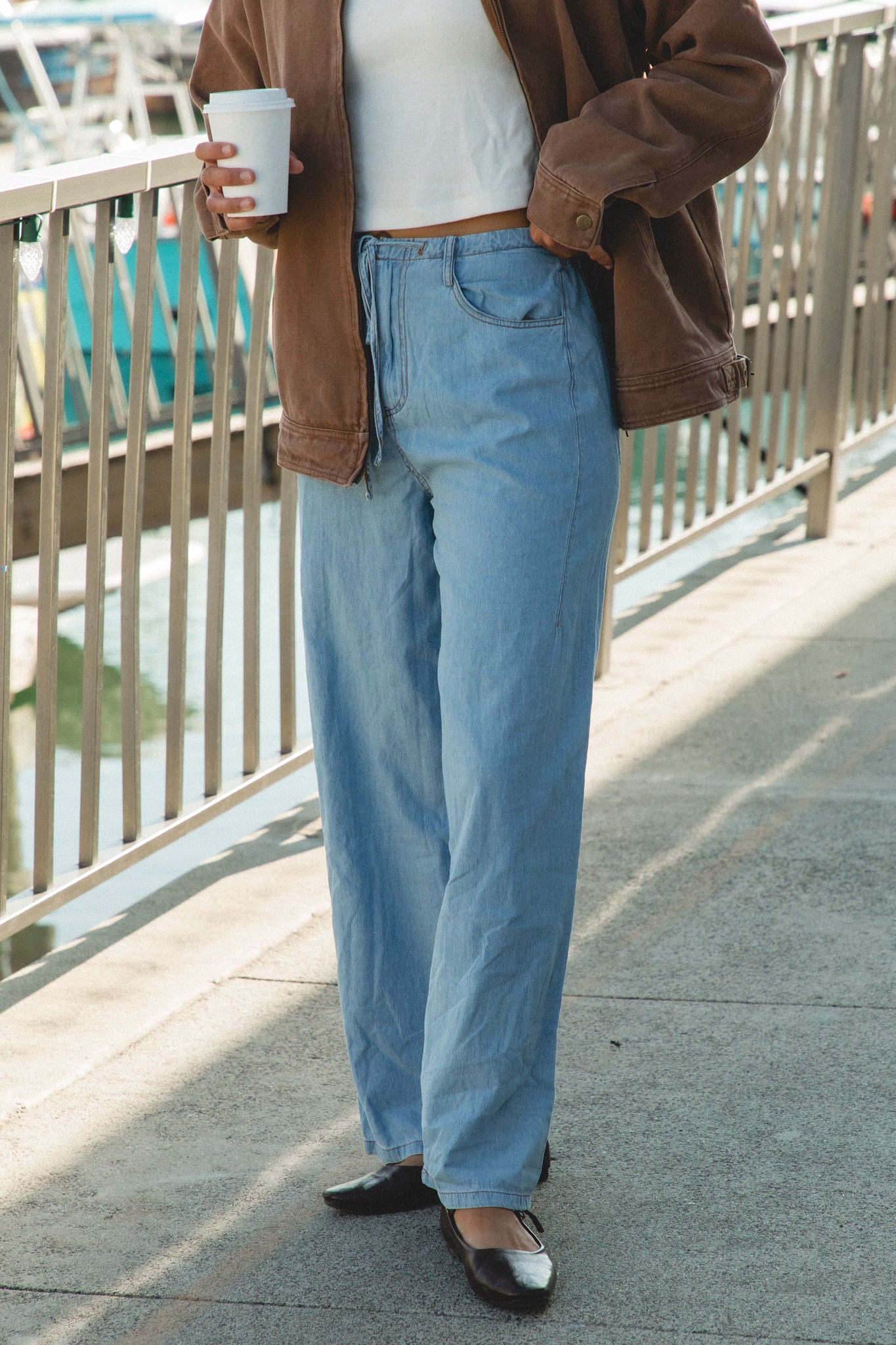 The Harland Denim Drawstring Pants blend a relaxed silhouette with thoughtful, functional design. A wide-leg cut gives them a modern, effortless feel, while the adjustable drawstring and subtle back-waist elastic offer comfort without sacrificing structure.