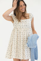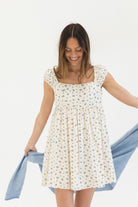 Our signature babydoll silhouette now in the prettiest blue floral print. Complete with stretchy cap sleeves & smocked back for a comfortable fit. Pack for your next summer getaway & wear on repeat all season long.