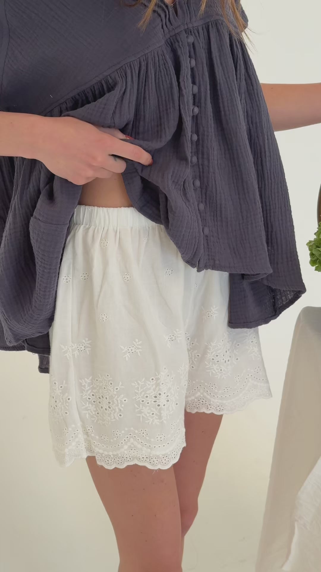 Crisp and feminine, the Andie Eyelet Shorts are a spring essential. Designed in white eyelet with a built-in lining for comfortable coverage, they offer a flattering fit with breathable detail throughout.
