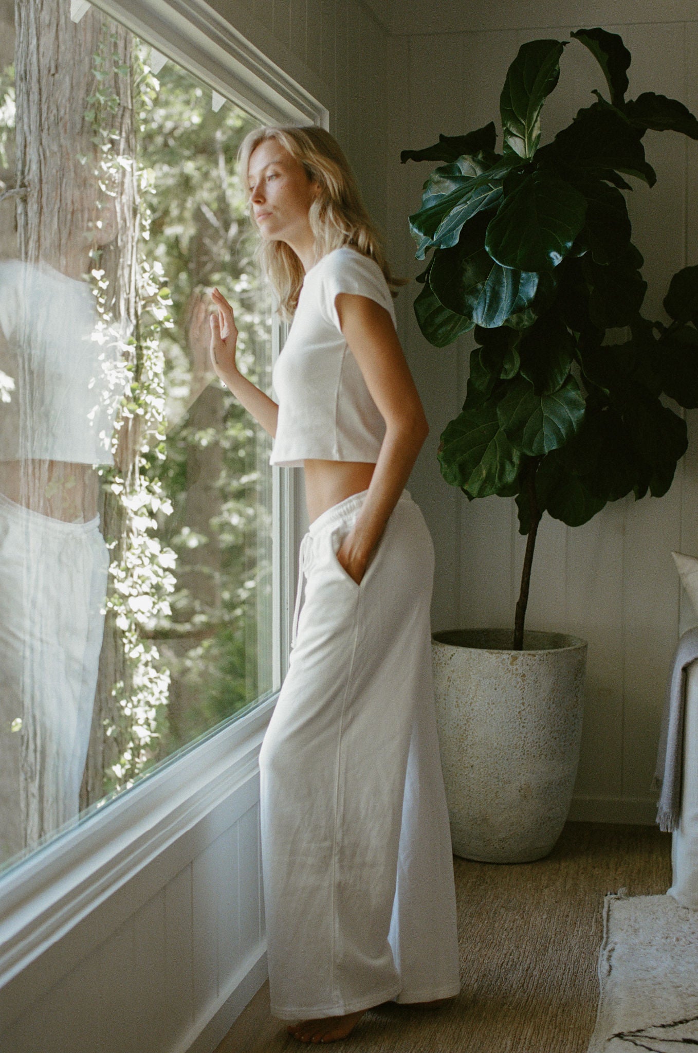 The Dover Pants are a polished take on relaxed dressing. Made from soft, breathable cotton, they feature a high-rise waist and wide-leg silhouette that flatters and elongates. The off-white color keeps the look clean and minimal, while side pockets add everyday practicality. A perfect piece to carry you from summer afternoons into cozy pre-fall evenings.
