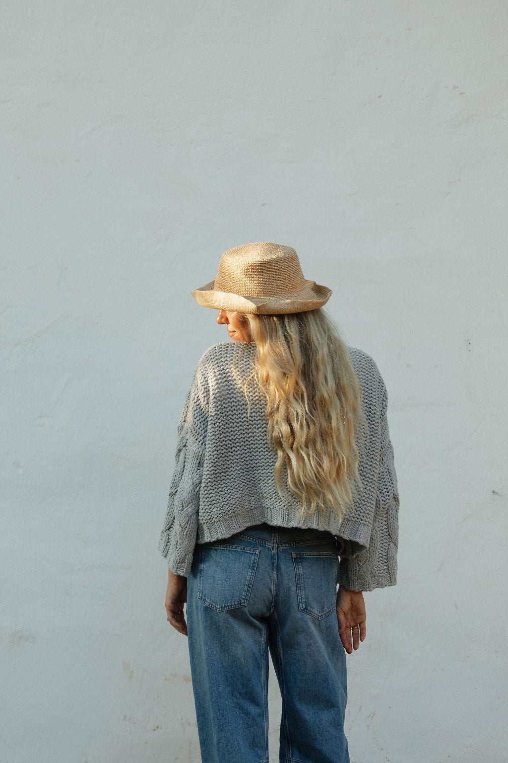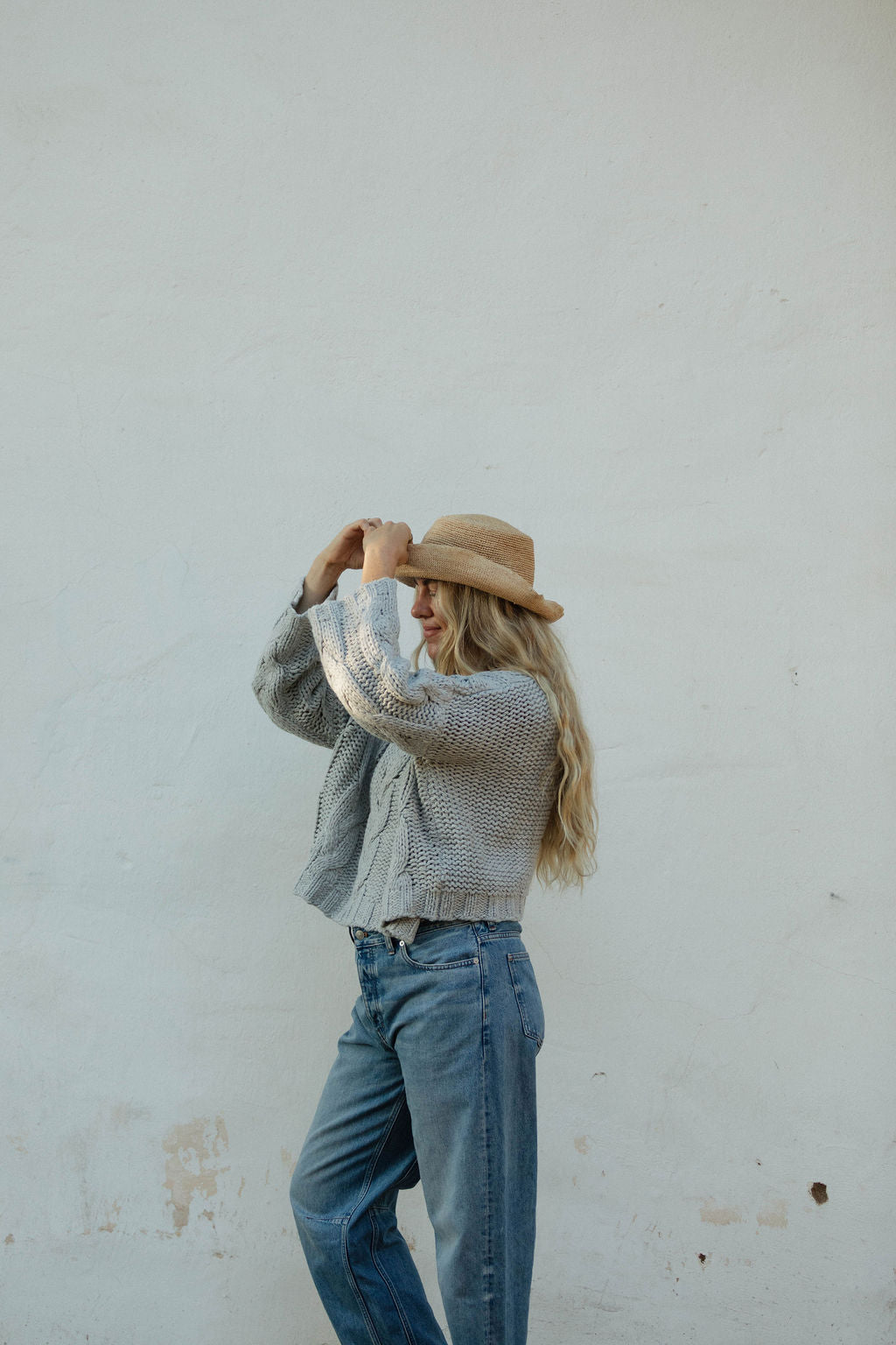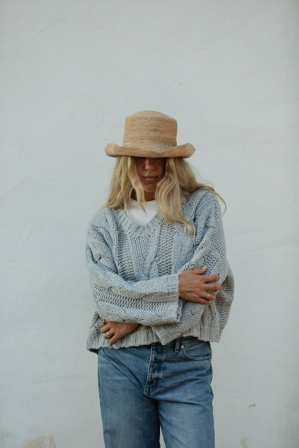 The Nash Cable Knit Sweater combines a soft, chunky yarn knit with expert craftsmanship for a cozy yet refined feel. Its boxy, cropped silhouette and cropped sleeves create a modern, minimalist look that layers effortlessly. Perfect for elevating casual outfits with textured comfort and a flattering V-neck detail.