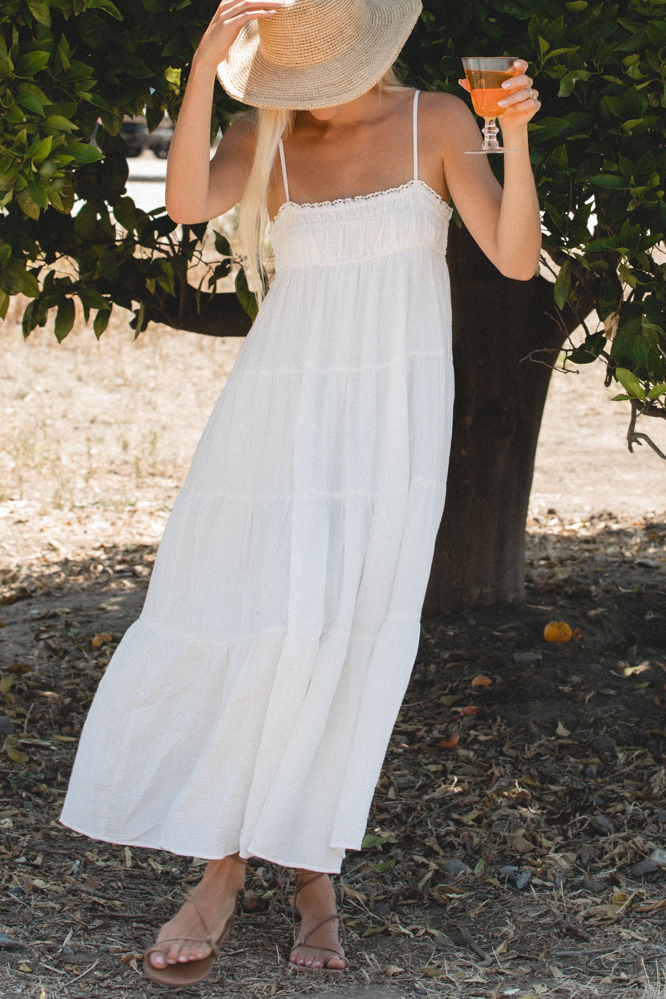 Elegant and breezy, the Vineyard Tiered Woven Maxi Dress is perfect for any occasion. Crafted from soft cotton gauze, it features adjustable straps for a perfect fit and a fully lined design for all-day comfort. Perfect for layering with a cardigan or denim jacket, making it our number one item to pack for vacation.