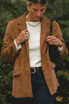 The Brooklynn Jacket is your go-to layer for effortless fall styling. Designed with a relaxed fit and classic button closure, it features a soft, suede-like feel that adds just the right touch of texture. Warm, versatile, and easy to dress up or down—this camel-toned jacket pairs perfectly with denim, knits, and all your favorite fall looks.