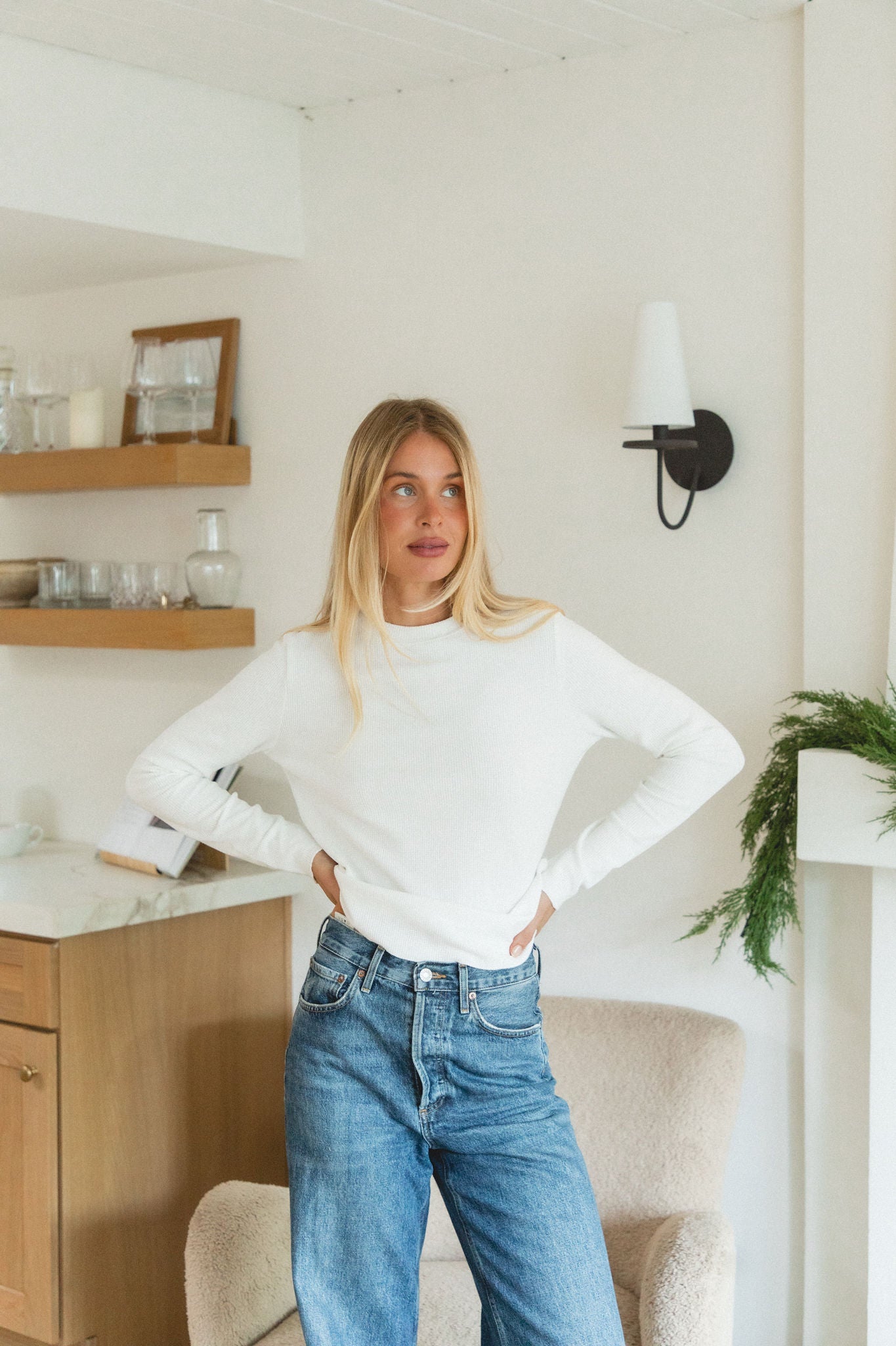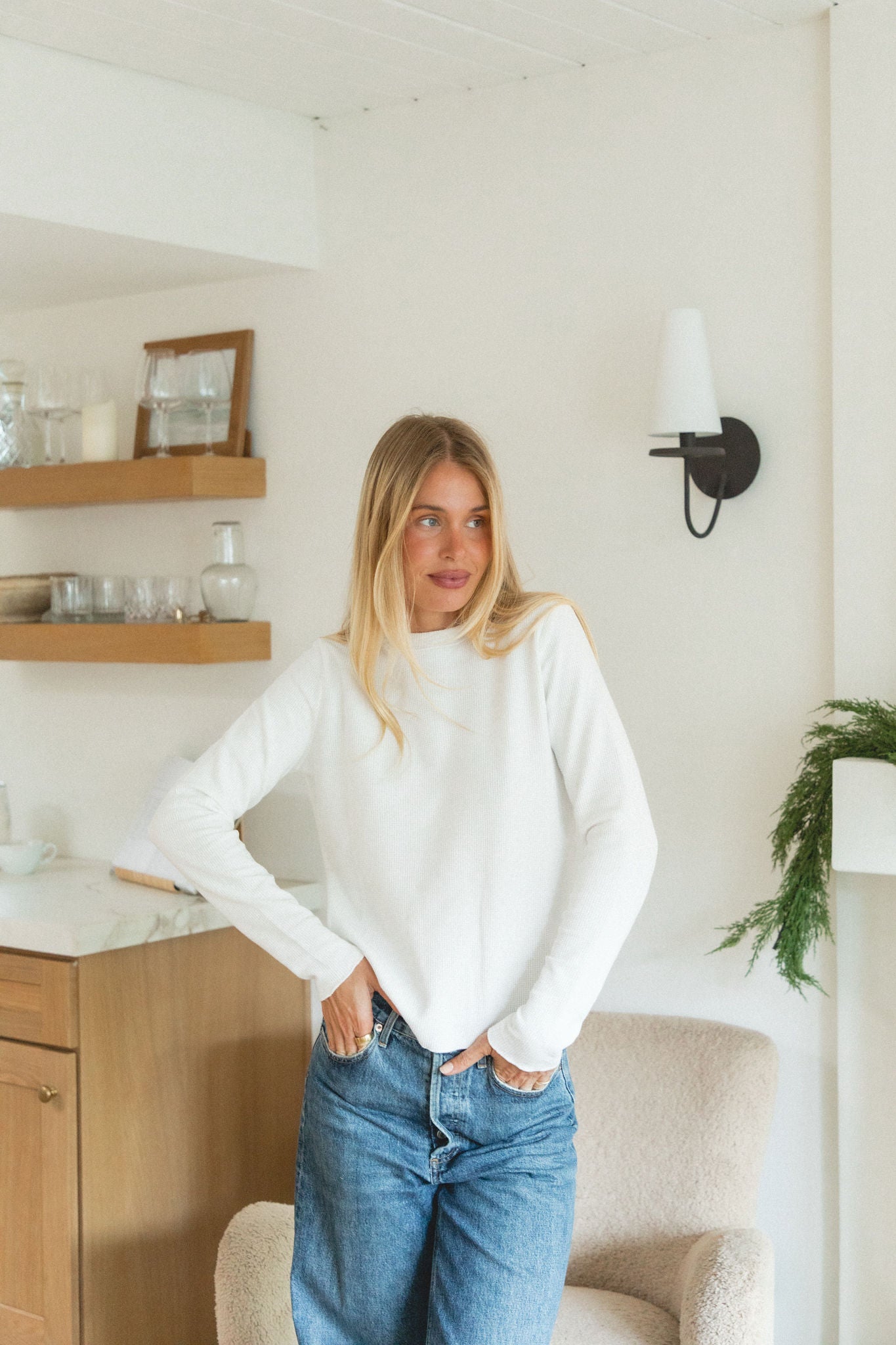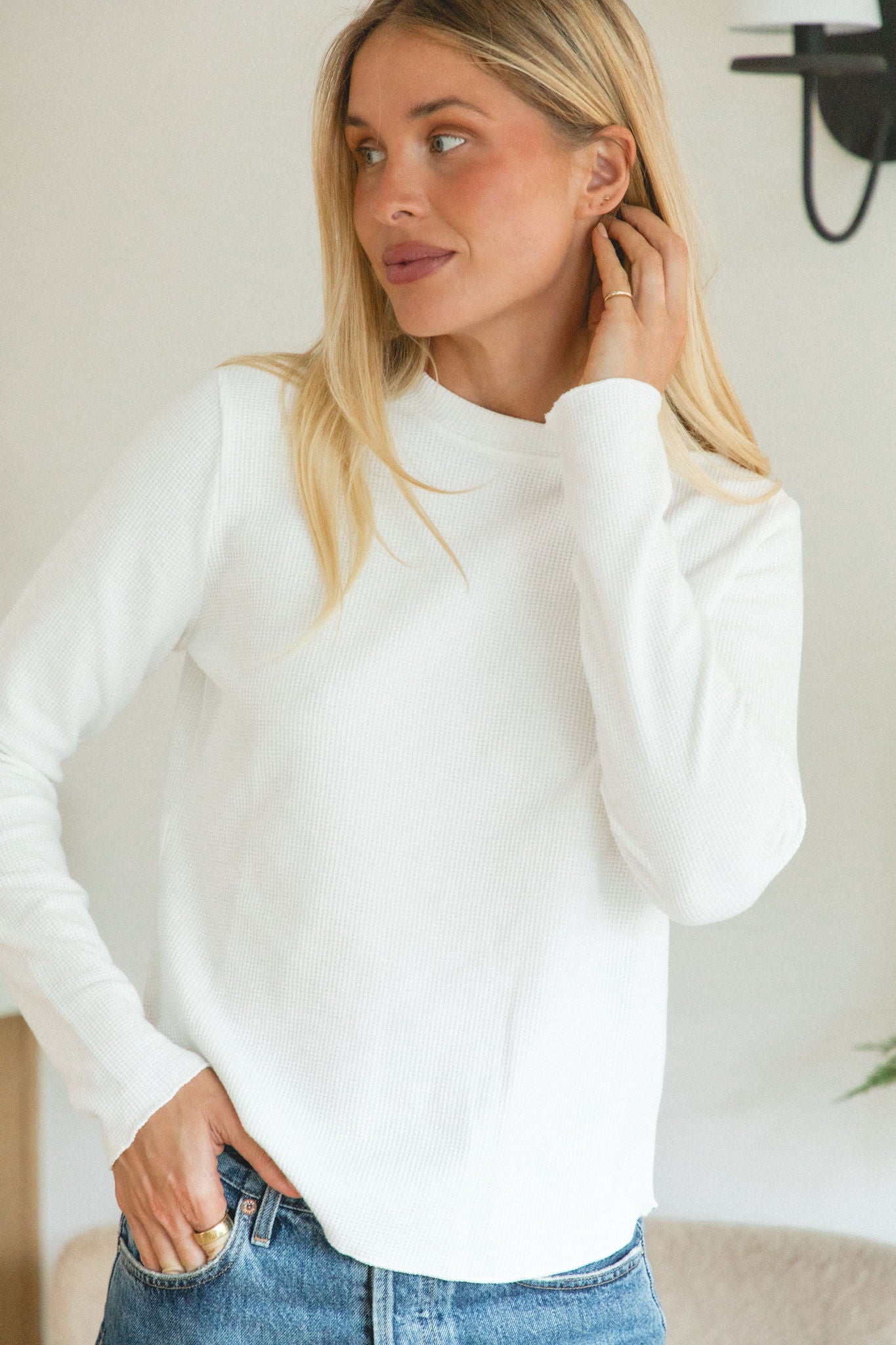 Understated, warm, and endlessly versatile. The Daybreak Waffle Knit is your go-to base layer for cozy, effortless winter style. Featuring a soft waffle texture and gentle rounded hem, it’s the piece you’ll reach for again and again. Layered under knits, jackets, or worn alone by the fire. An essential foundation for every cold-weather moment.