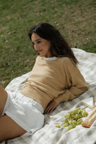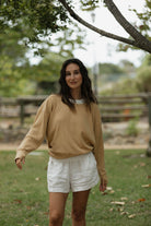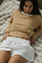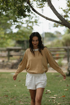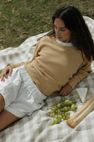 Model: Lyric is 5'8 wearing size small (Dusty Honey), Helene is 5'8 wearing size small (Cream)