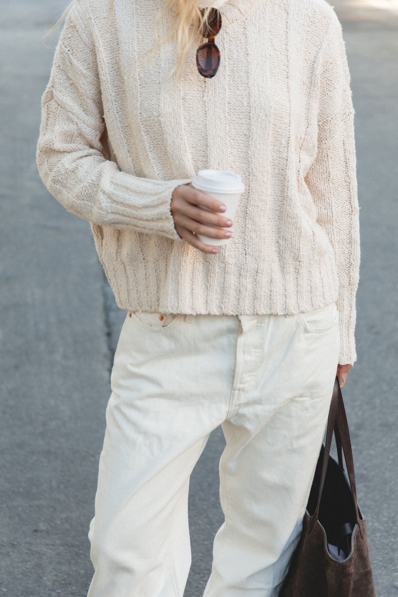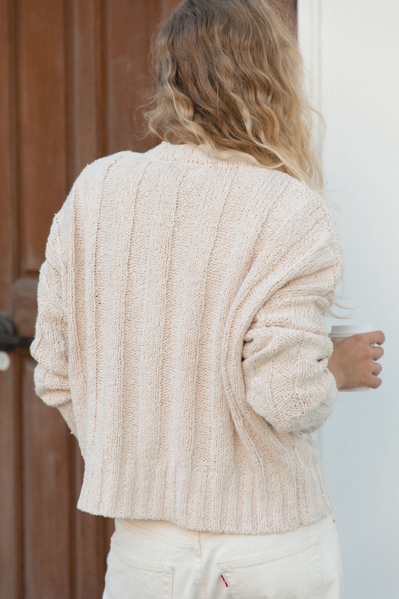 Crafted from a premium textured knit, this wide-ribbed pullover brings an effortless mix of comfort and sophistication. The relaxed silhouette fits beautifully, while the ribbed detailing adds depth and subtle structure. In a soft natural tone, it’s the kind of timeless layer that pairs with everything—designed to move with you through every season.