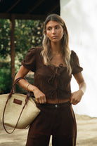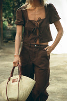 Crafted from a soft cotton blend, the Maven Tie Top brings ease to winter styling. The rich chocolate tone pairs with anything, while adjustable front ties add special detail. A standout piece on its own and the perfect match to the coordinating Maven Wide Leg Pants.