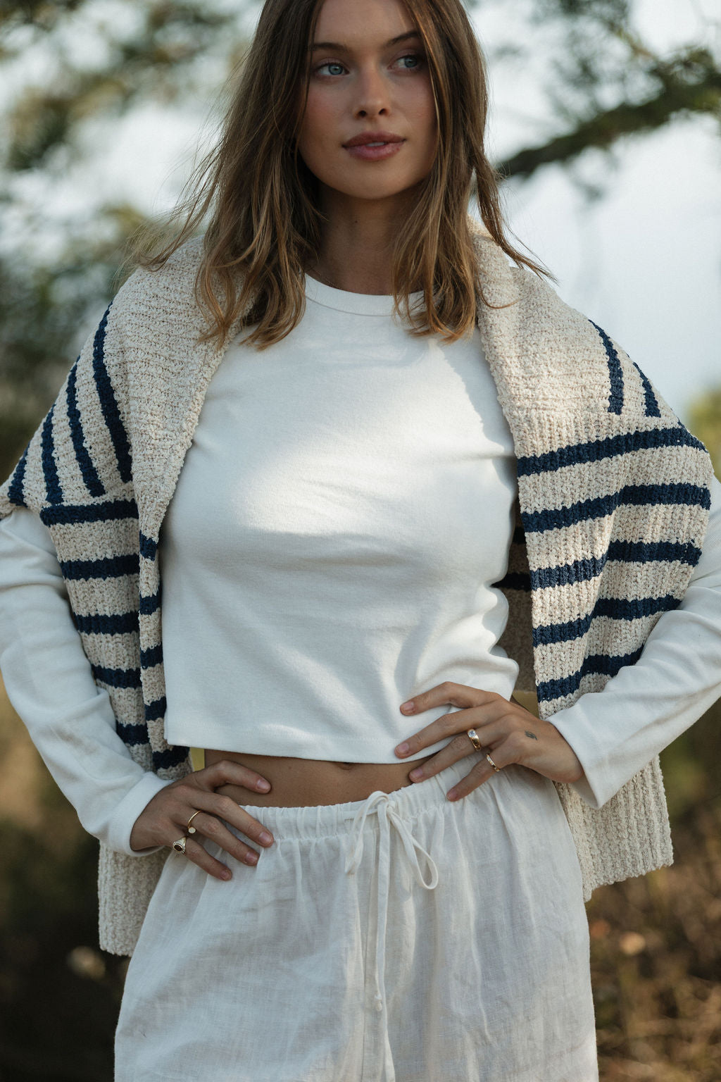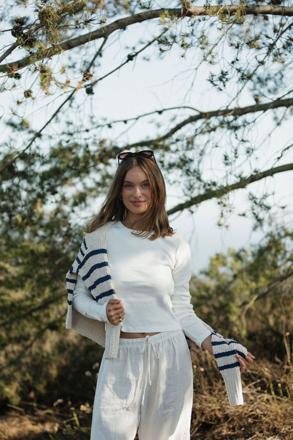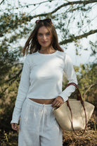 This Keep It Simple Cotton Long Sleeve is crafted for comfortable, true-to-size wear. Its slightly cropped length makes it an excellent base layer, providing warmth without bulk during fall. Made from soft cotton, it offers breathability and ease of movement, ideal for layering under jackets or sweaters.