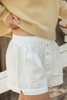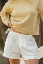 Designed in a boxer style with a slightly oversized fit, these shorts offer relaxed wearability. The stretchy waistband ensures a secure yet flexible fit, while the button detailing on the front adds a refined, special touch to a classic silhouette. Perfect for casual days when ease and understated design are essential.