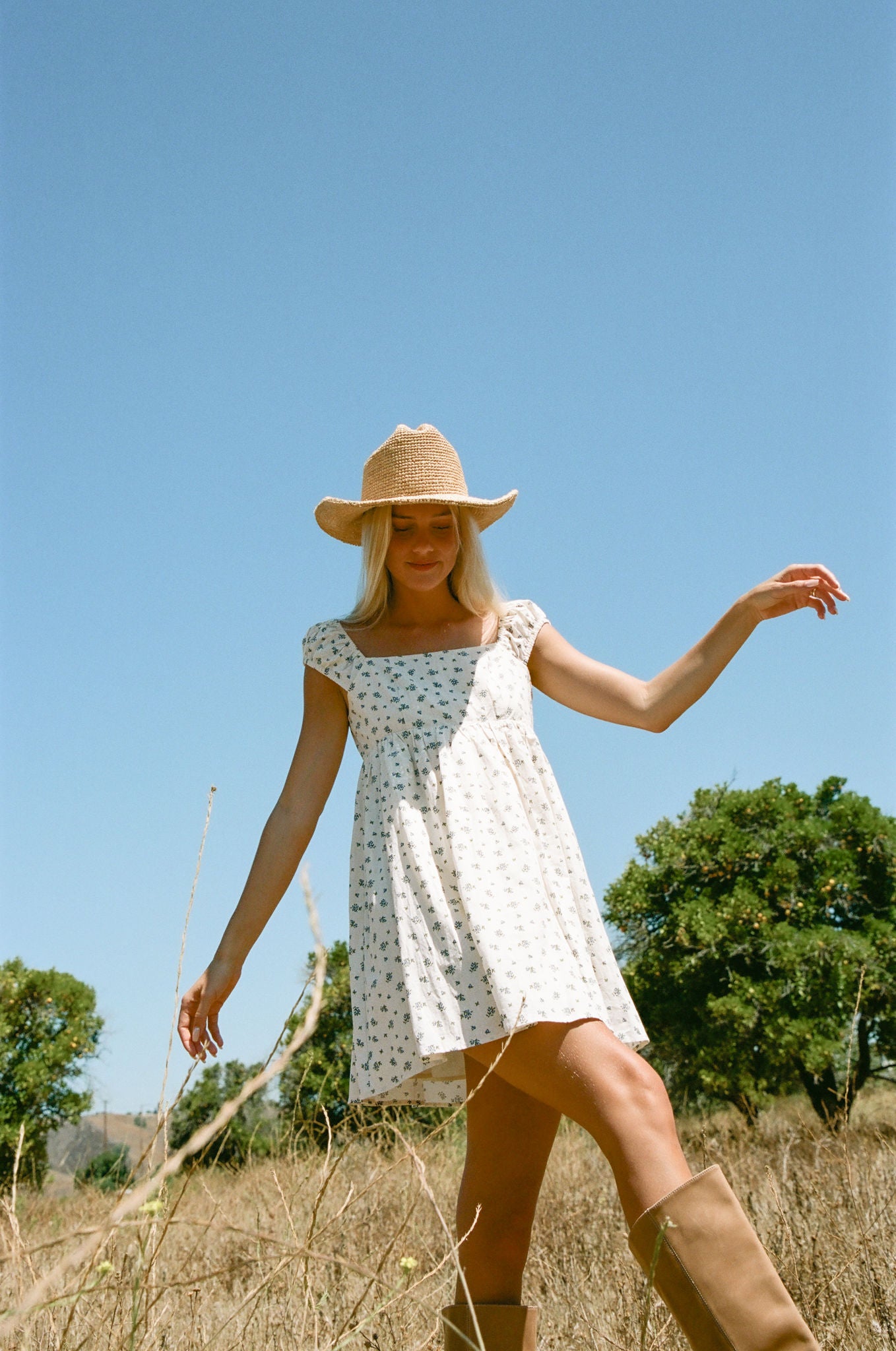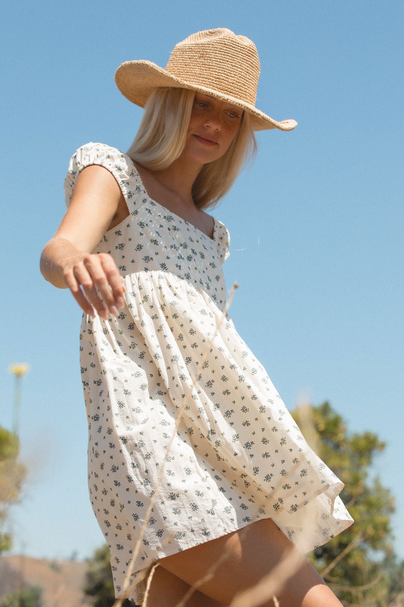 Our signature babydoll silhouette now in the prettiest blue floral print. Complete with stretchy cap sleeves & smocked back for a comfortable fit. Pack for your next summer holiday & wear on repeat all season long.