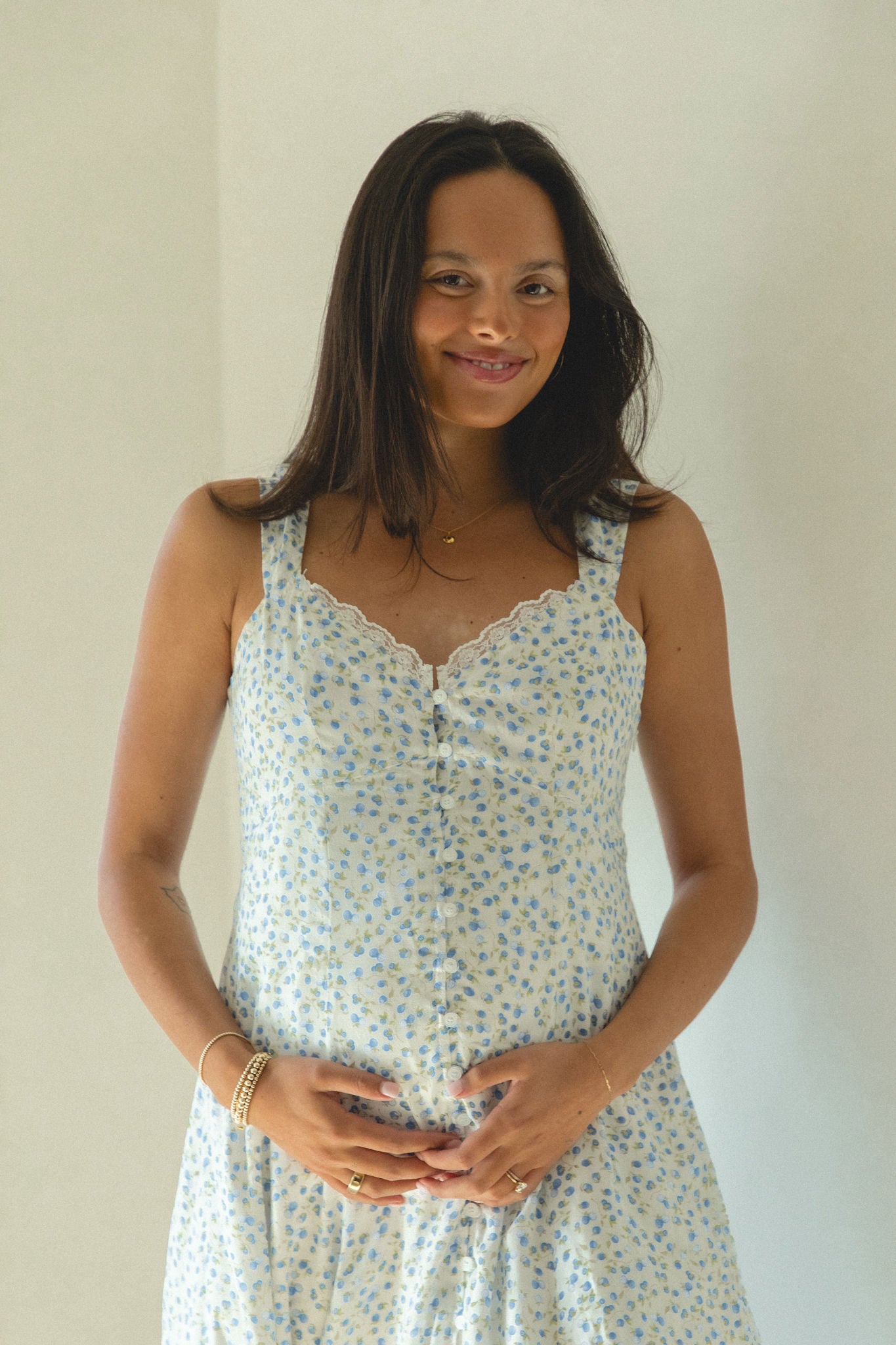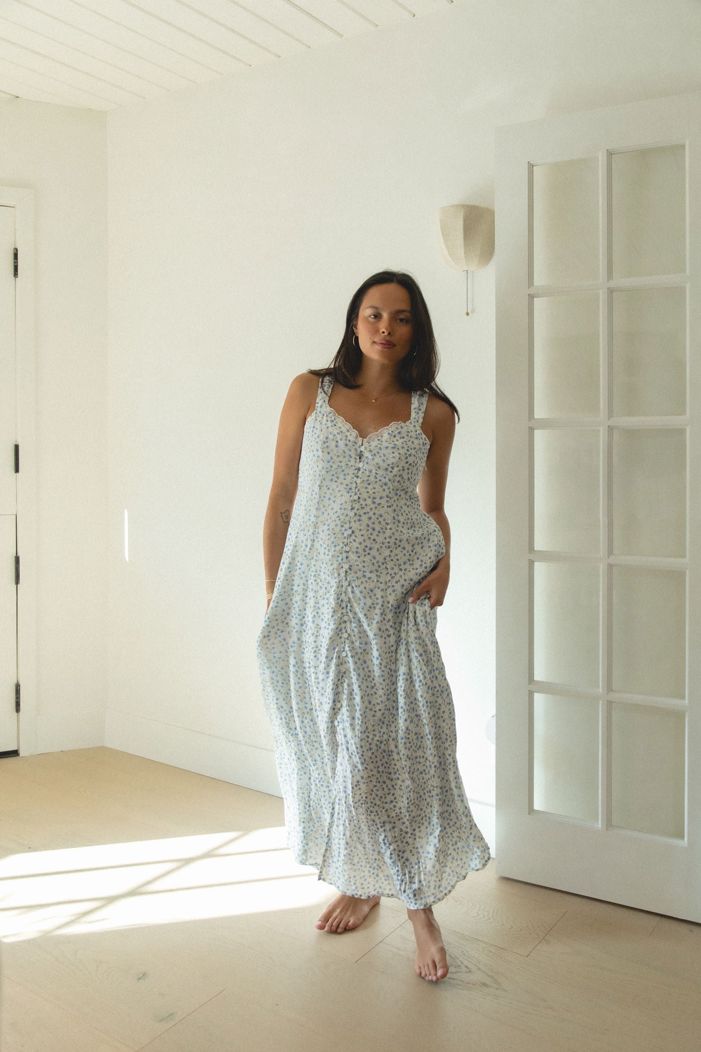 Introducing the Gioia Button Floral Dress - your new go-to for all occasions. Featuring a charming floral print, delicate lace detailing on the neckline and buttons down the front.