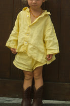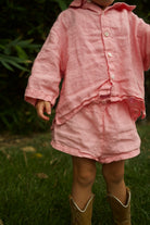 Match your mini with our newest addition to the Capri Linen Series! Made from high-quality linen fabric, the Capri Kids Linen Shorts are breathable and comfortable for your little one. The elastic waistband ensures a secure fit. Ideal for beach days or family outings.