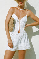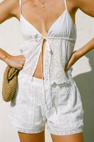 Eyelet is in this summer! These mid-rise shorts feature delicate eyelet detailing and are made from lightweight cotton. Complete the look with the matching tank!