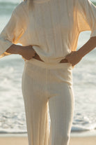 Stay cozy with our Seashell Ribbed Cotton Sweater Pants. Made with a soft, lightweight knit. Perfect for a casual day out or a lazy day at home.