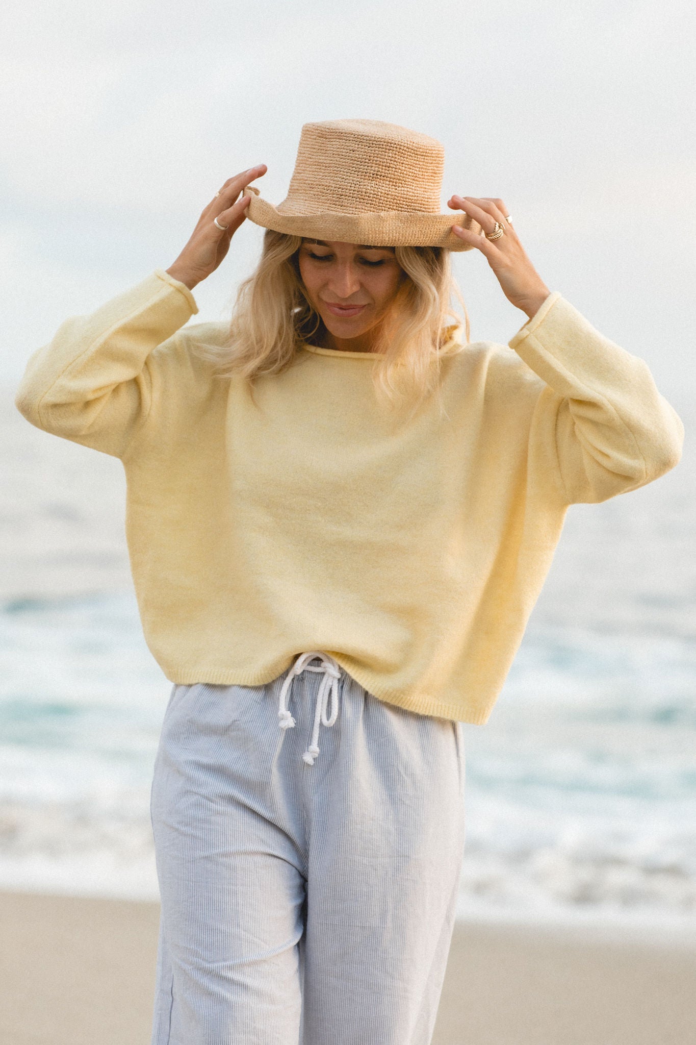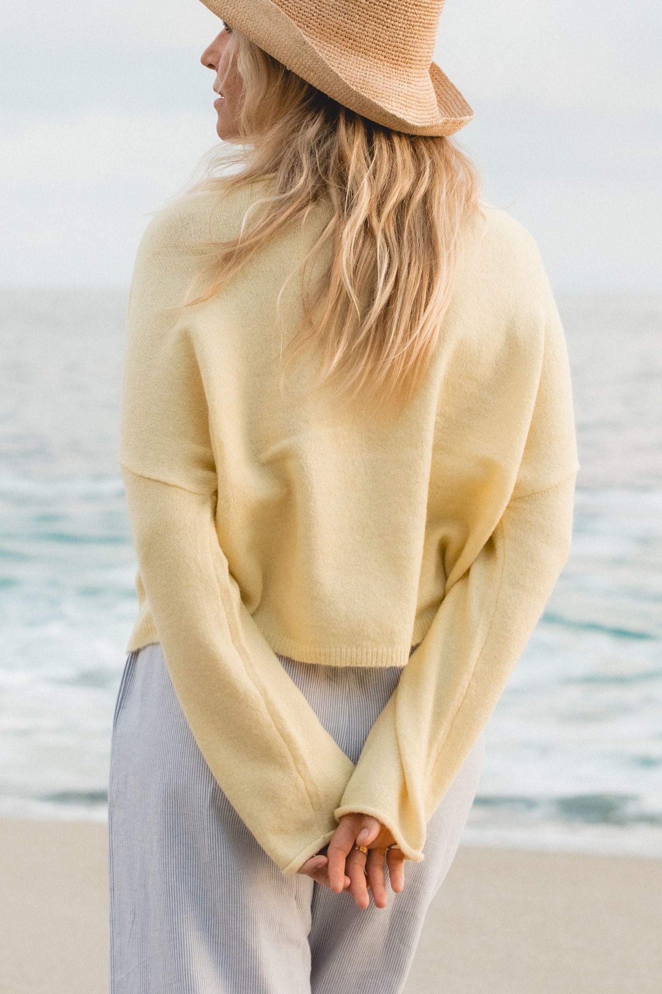 Designed for layering or throwing on solo, it’s the kind of sweater that carries you from breezy mornings to glowing sunsets with ease.