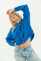The Free Falling Button Cardigan is praised for its perfect fit, soft and stretchy material, and beautiful vibrant color. Customers love its versatile style and cozy look, though feedback on quality is mixed.