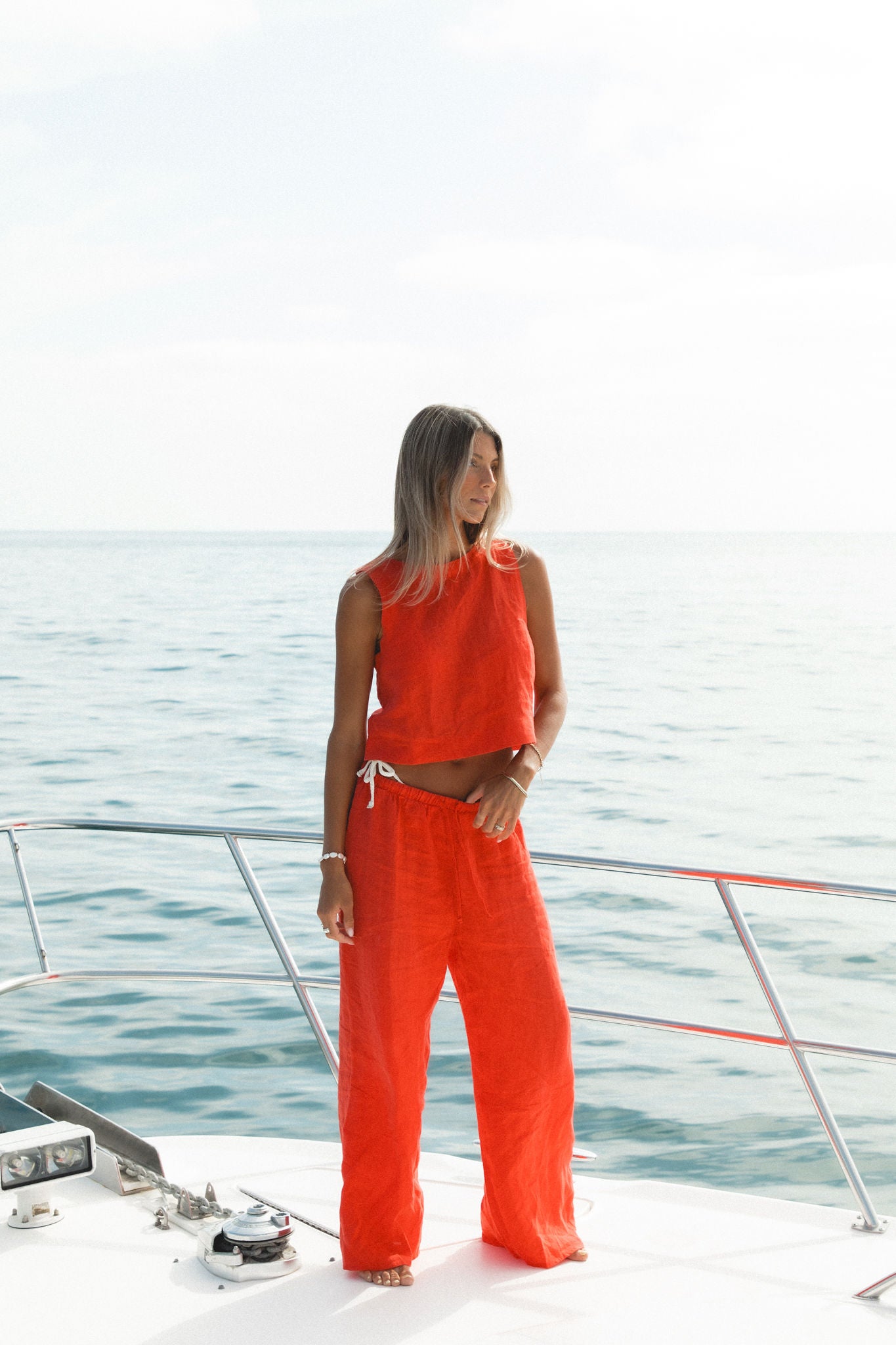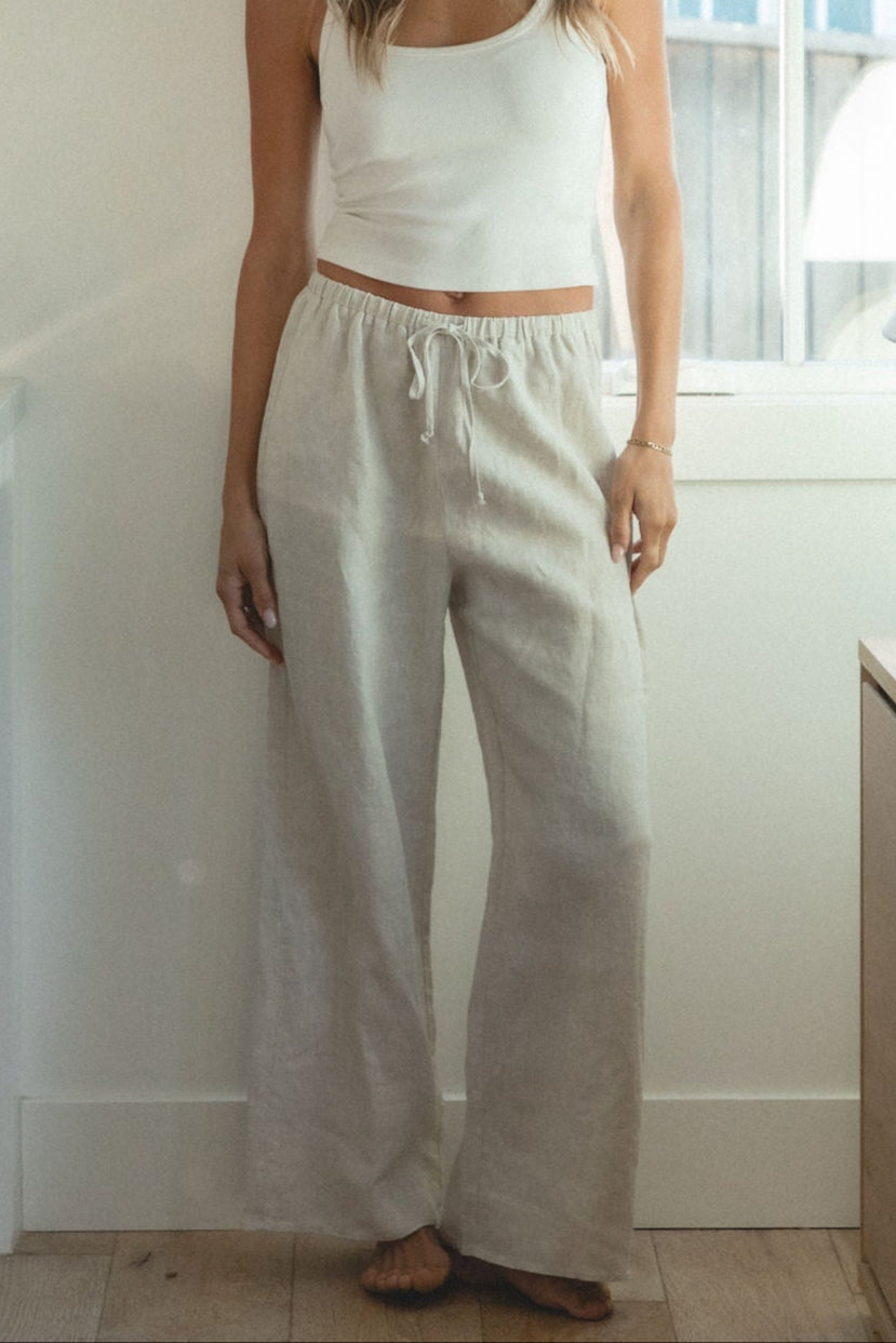 Lightweight, breathable, and designed for effortless wear, the Capri Linen Drawstring Pants are crafted from premium linen that only gets better with time. Naturally airy and moisture-wicking, linen keeps you cool on warm days while offering a relaxed, lived-in feel that softens with every wear.
