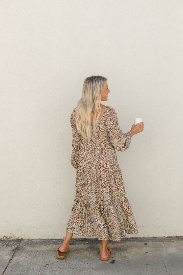 A beautiful and easy fit fall dress that could be worn California-style with some slides and sunnies, or pair with boots and a cozy knit for a cooler climate.