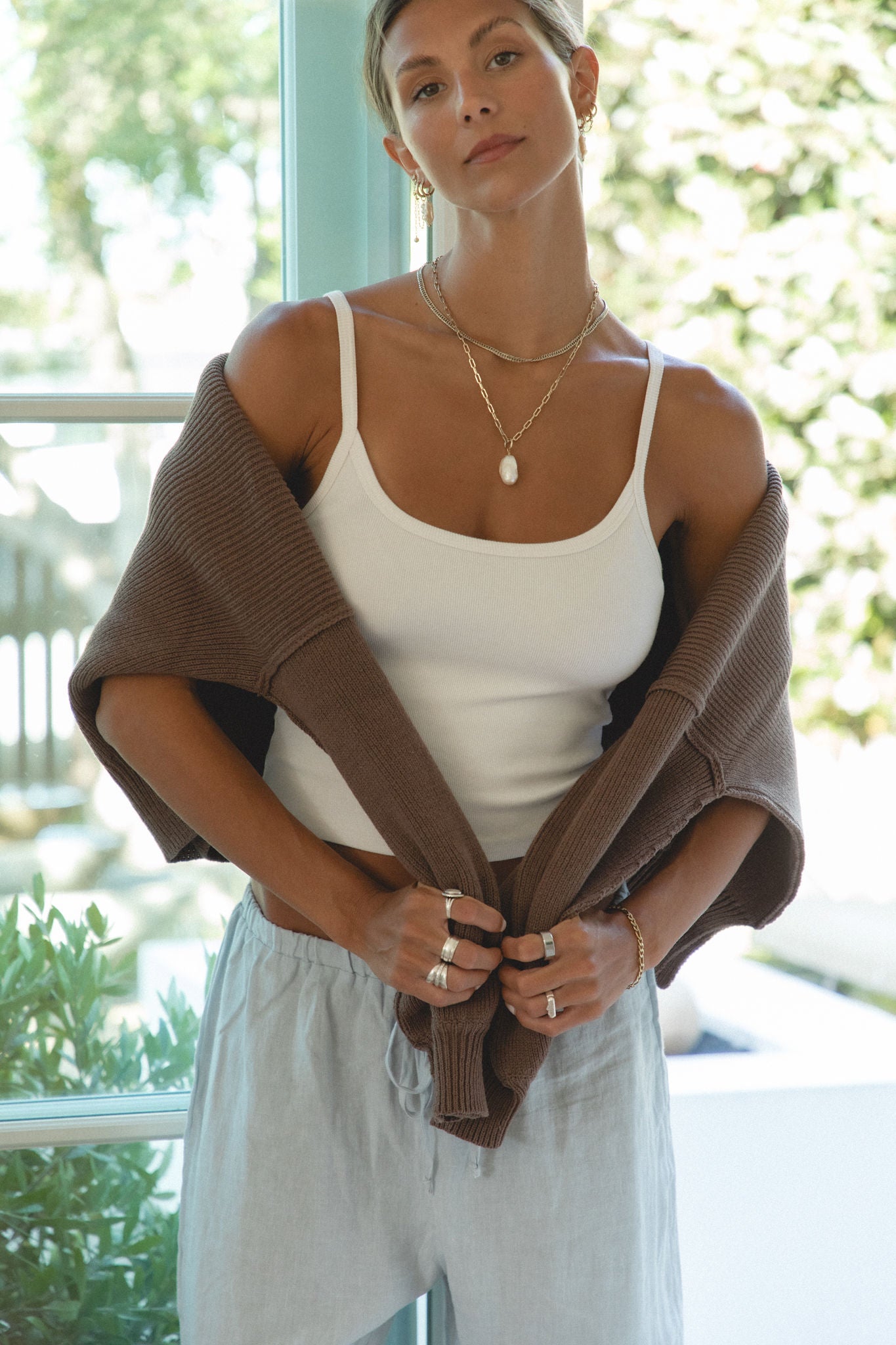 This Sol Ribbed Scoop Tank is an essential addition to any wardrobe. Its super stretchy material allows for a moldable fit that is both comfortable and flattering. Perfect for everyday wear or as a layering piece, this tank is a must-have for all occasions. Trust in its quality and versatility for a seamless addition to your style.